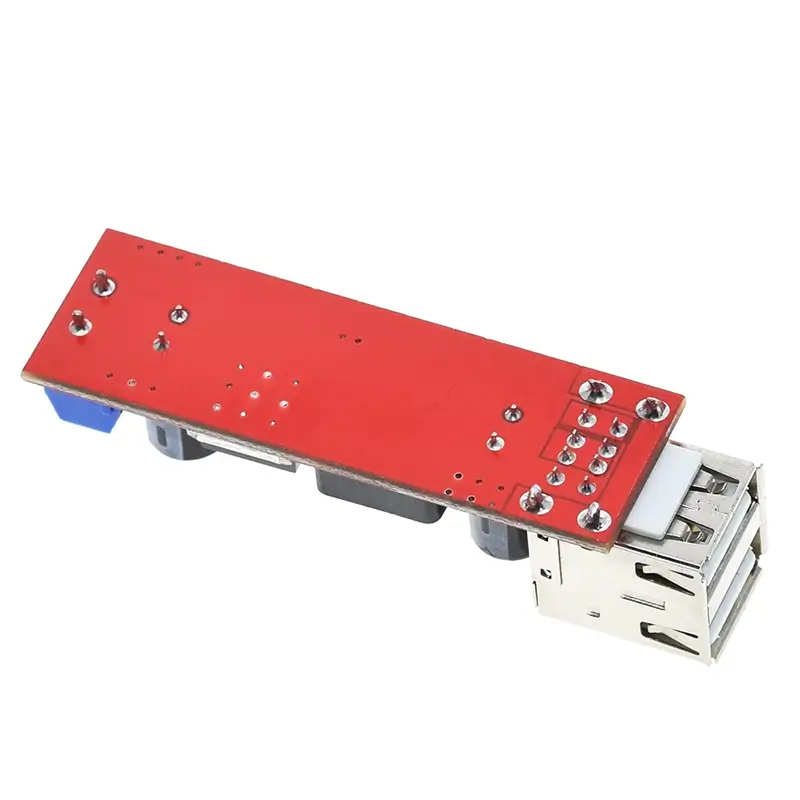 Input Voltage Range: 7V to 40V Output Voltage: 5V (fixed) Output Current: Up to 3A Dual USB Ports for simultaneous device charging High conversion efficiency up to 92% Built-in thermal shutdown and current limit protection Compact design for easy integration RoHS compliant